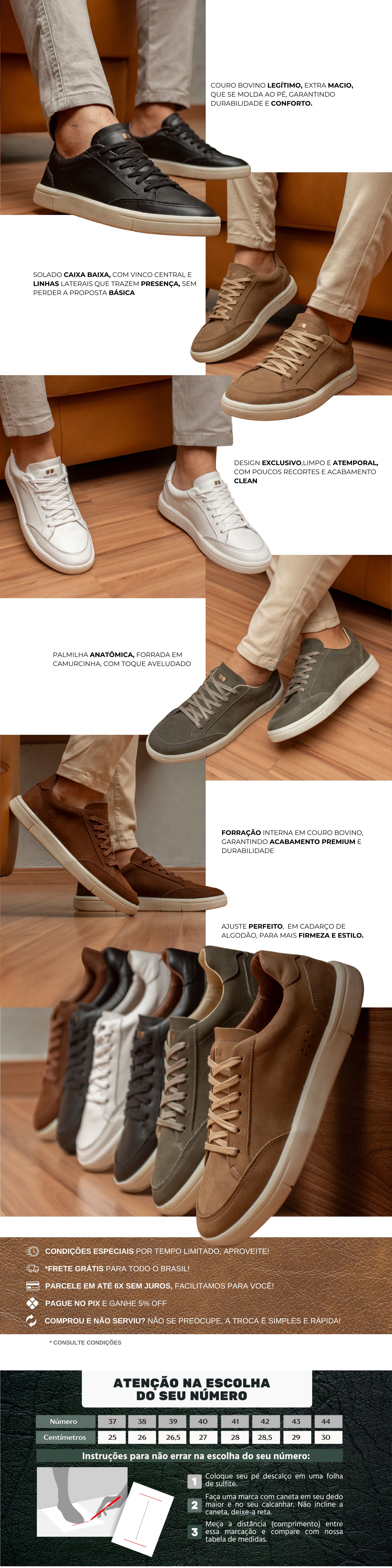 O Tênis Basic foi criado para quem busca um modelo slim, sem abrir mão de um design moderno.